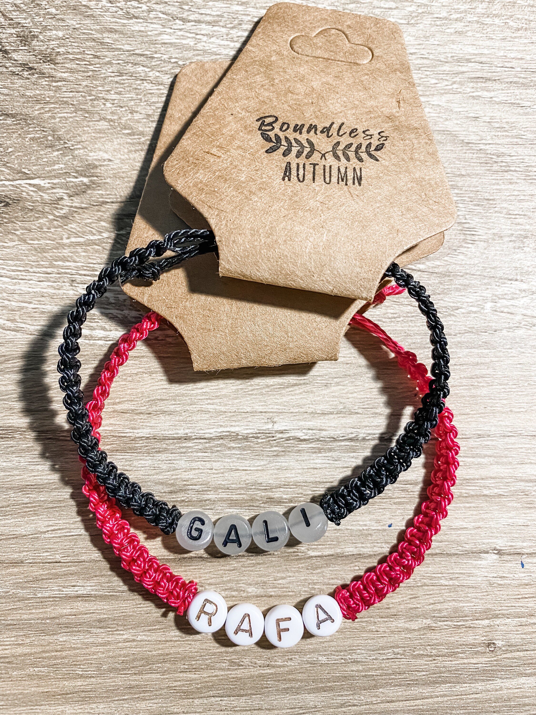 Fully customizable adjustable bracelets can be personalized as you wish. Many string and bead color options available.